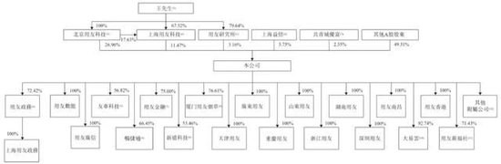 用友网络董事长王文京控制公司41.59%股权。